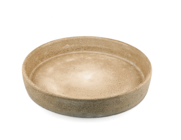 Apvalus, dekoratyvinis indas, natūralaus molio atspalvio.