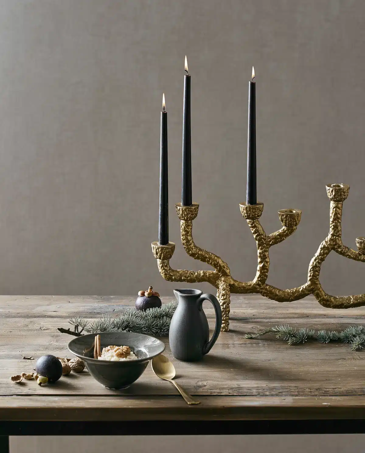 Žvakių laikiklis – žvakidė „BARRA” – meniškos ir organiškos formos, jūsų šventinį stalą ar bet kurį namų kampelį padarys išskirtiniu, įspūdingu! Žvakidėje telpa 7 kūginės žvakės. BARRA žvakidės yra pagamintos iš aliuminio su žalvario apdaila.