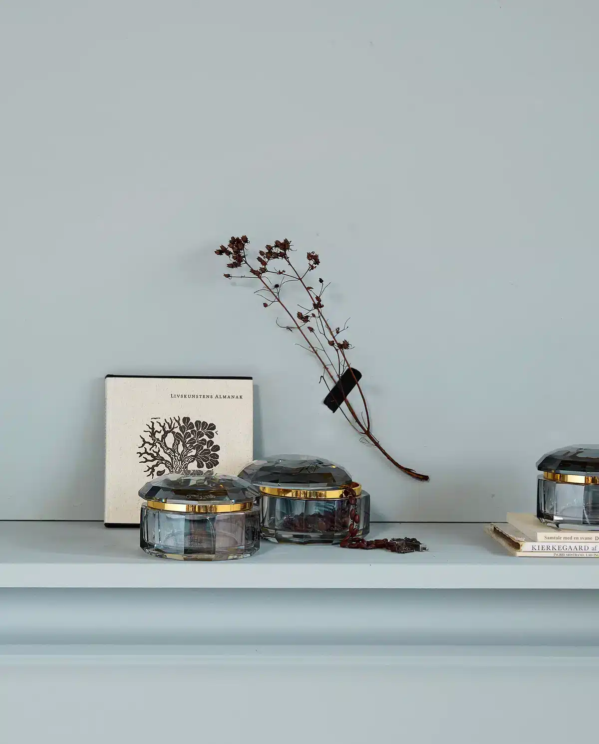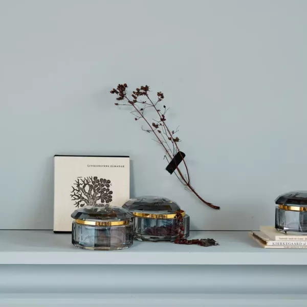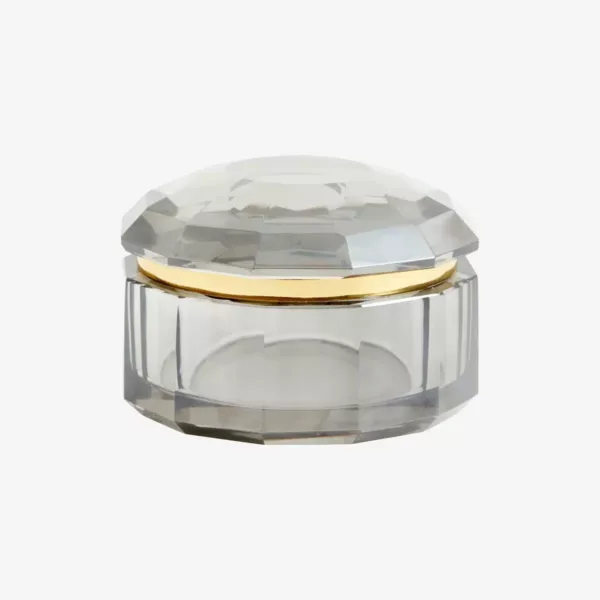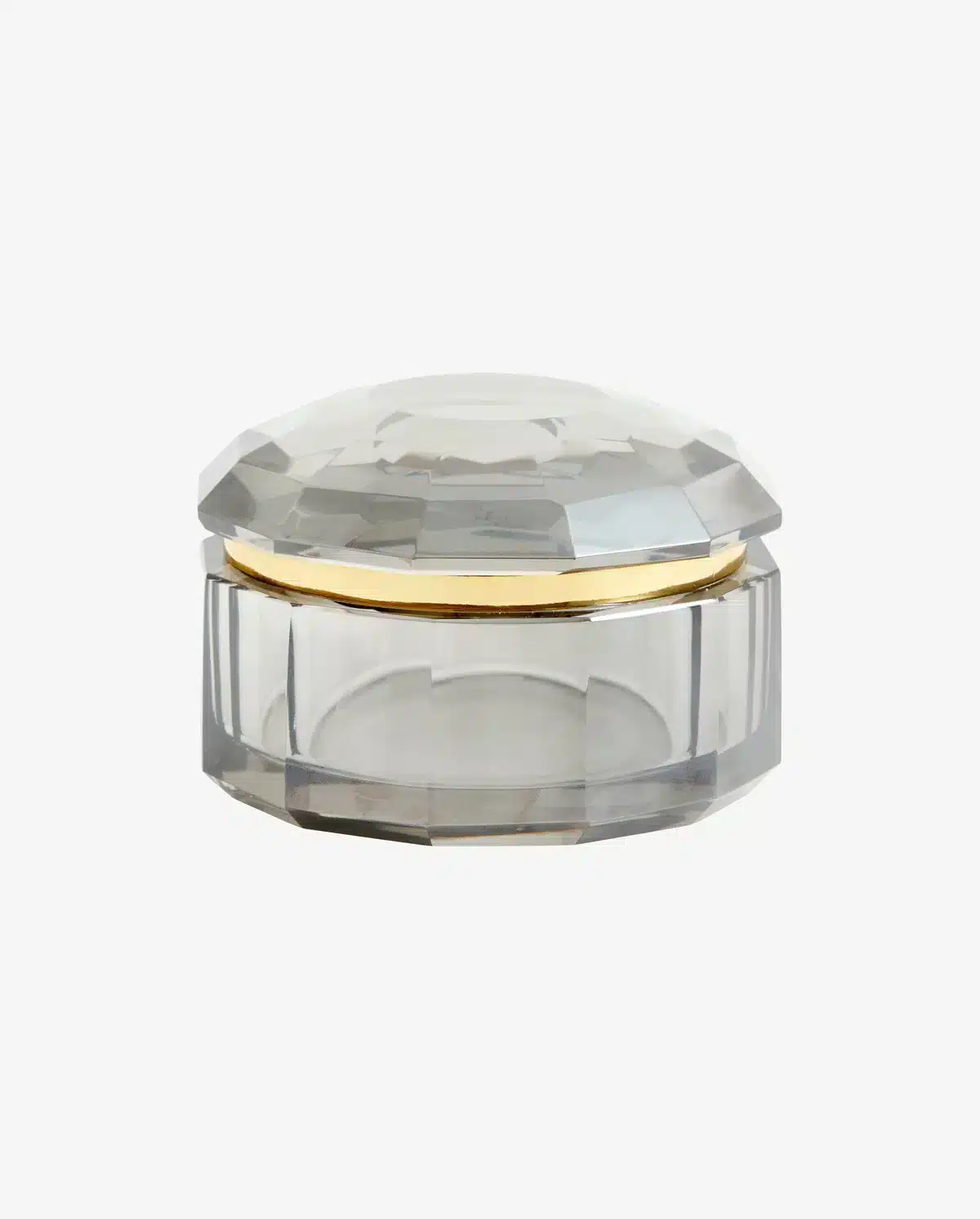 CRYSTA papuošalų dėžutė – stilinga ir praktiška interjero detalė! Ji puikiai atrodo vonios kambaryje ar miegamajame ant naktinio staliuko. Pagaminta iš sunkaus, lengvai tamsinto („smoke”) stiklo.