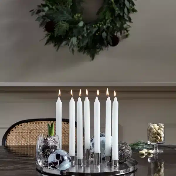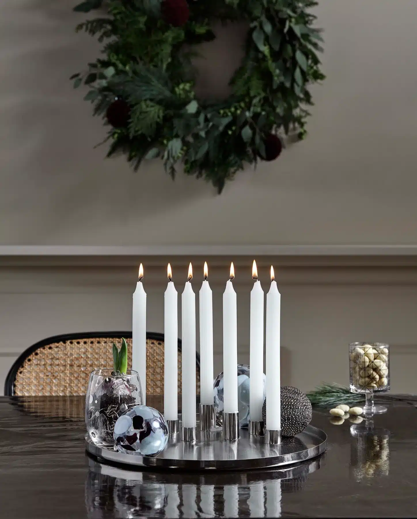 CUPS  apvalus padėklas-žvakidė – puošnus namų aksesuaras! Tai 2 viename – ir žvakėms, ir papildomoms dekoracijoms ar net skanėstams! Papuoškite šiuo aksesuaru savo svetainę jaukiu šventiniu periodu ar  mėgaukitės juo ištisus metus! Vieta 7 žvakėms.