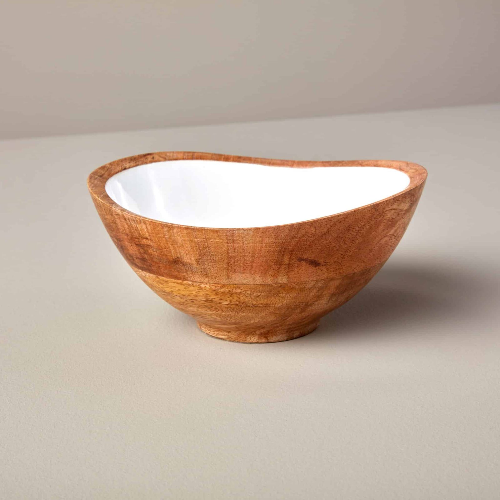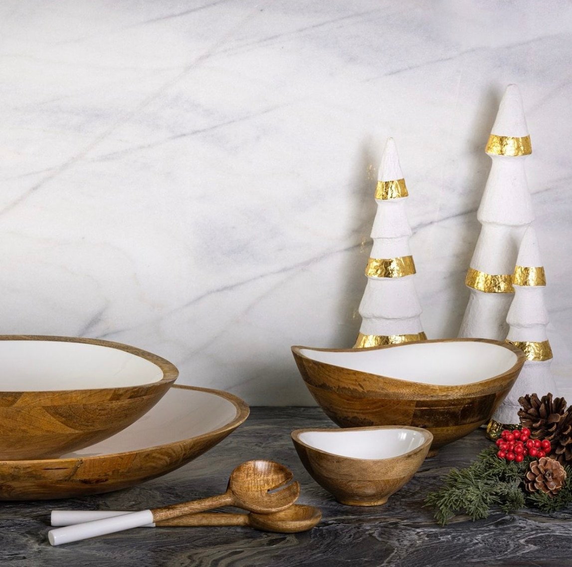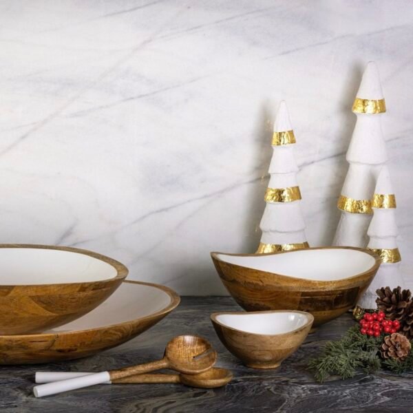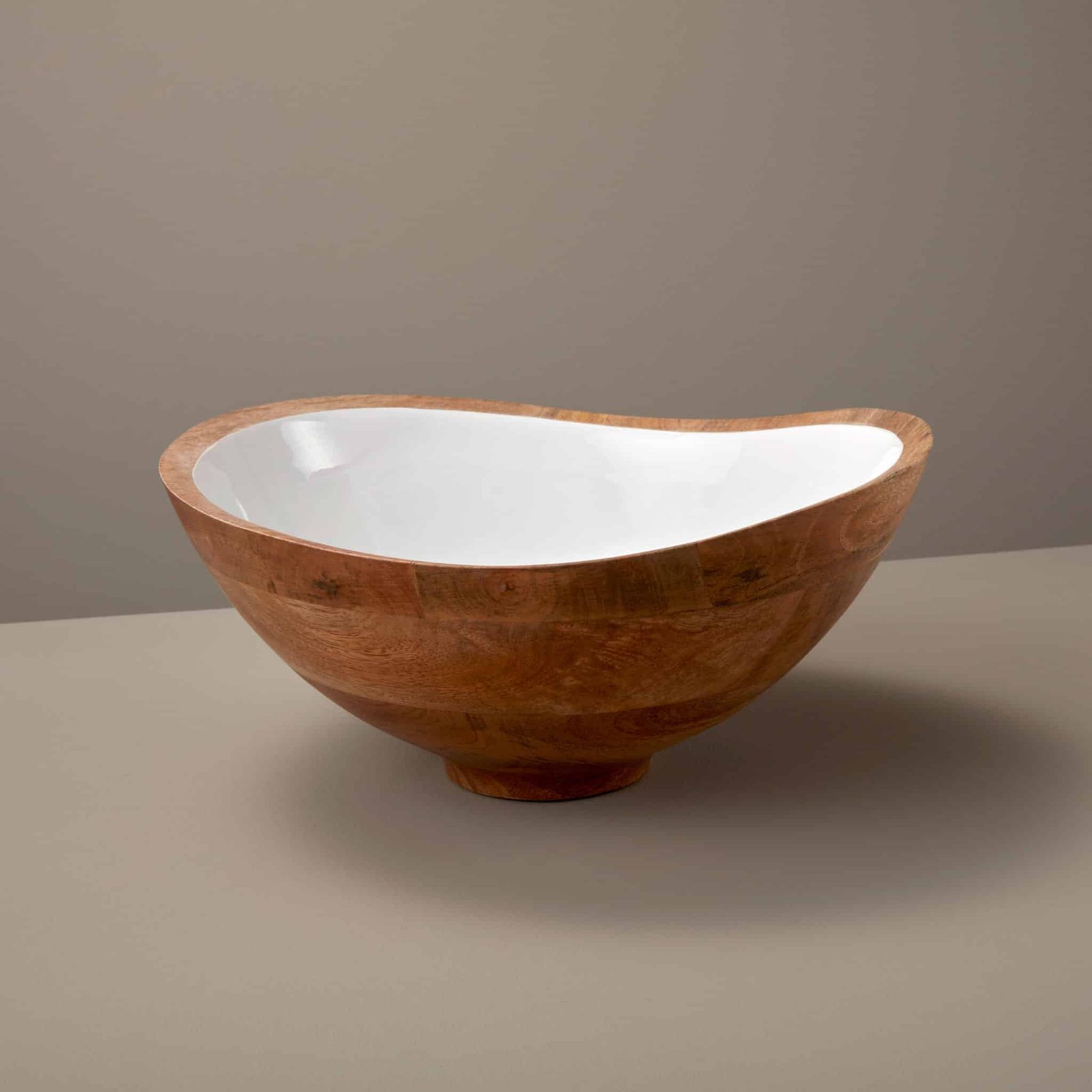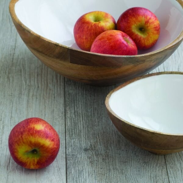 „Mango” kolekcijos dubenys – vertinantiems estetiką, teisingą požiūrį į kuo natūralesnę aplinką bei išskirtinius medžiagų derinius! Minimalistiniai, lengvi, bet talpūs dubenys pagaminti iš mango medienos ir emalio, yra patvarūs ir labai dailaus dizaino.