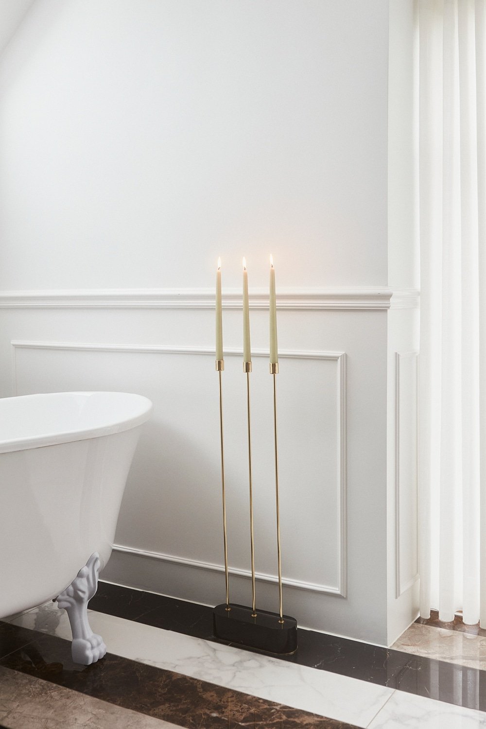 Tvirtas marmurinis pagrindas ir išskirtinės žalvario spalvos detalės GRASIL žvakidei suteikia unikalią išvaizdą ir nepaprastą eleganciją. GRASIL žvakių laikiklis yra grakšti interjero detalė, tinkanti bet kokiai erdvei.