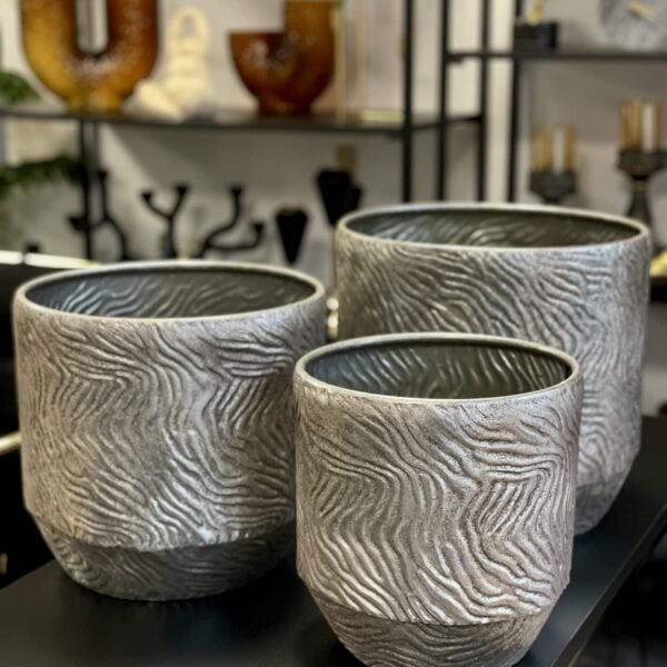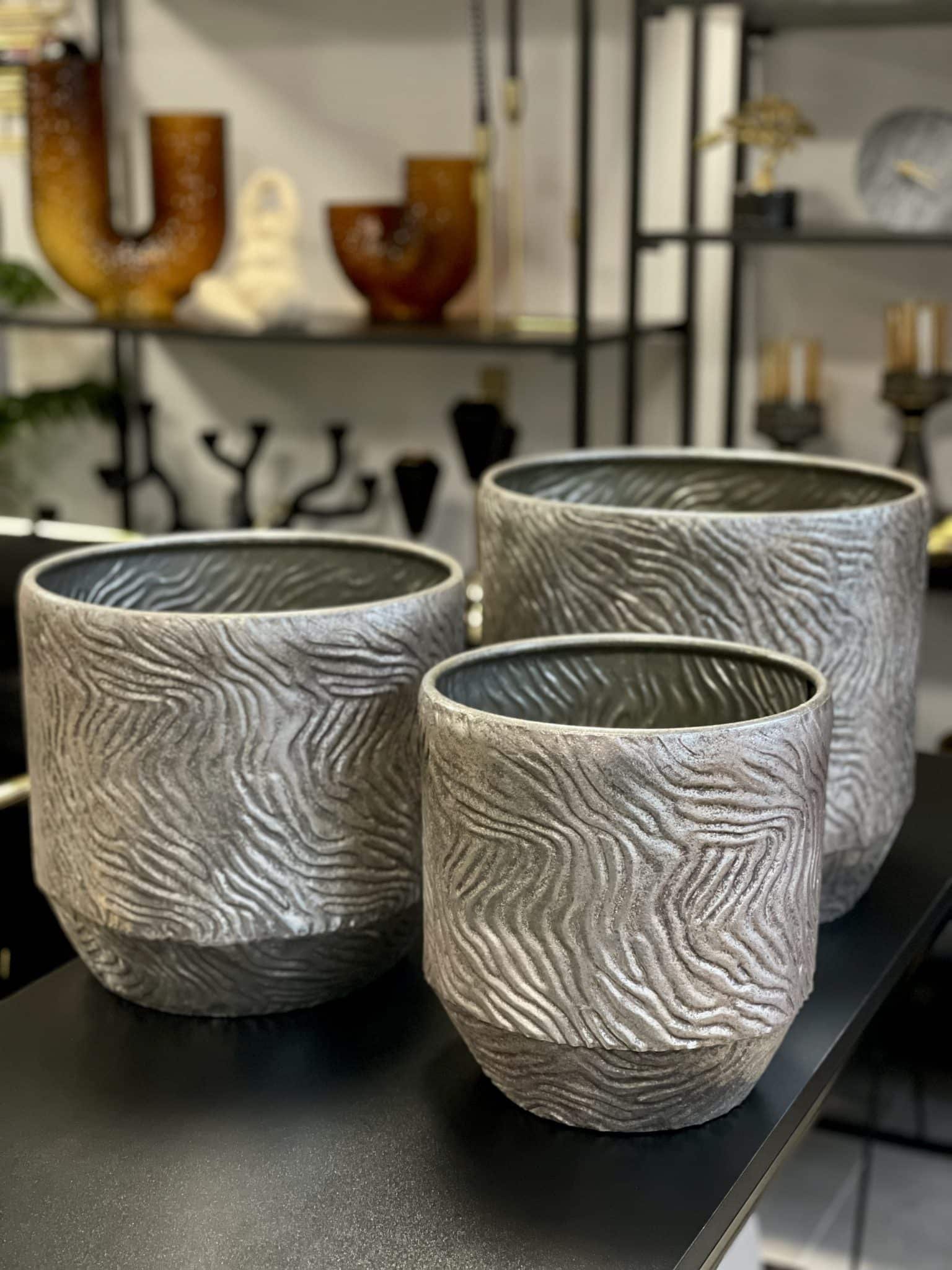 Sidabro spalvos metaliniai vazonai SILVER – parduodami visi kartu.