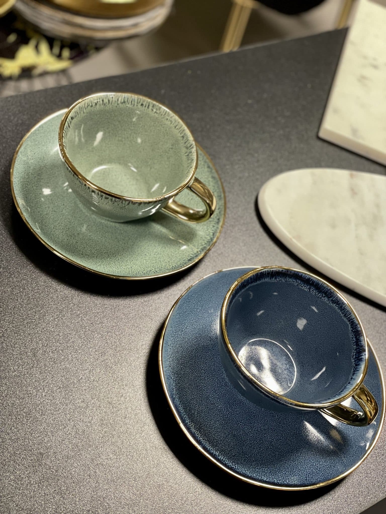 Prabangios, porcelianinės lėkštutės tiks ir po mūsų asortimente turimais puodeliais, ir atskirai serviruojant desertus ar užkandžius. Žavios mėlyna ir žalsva spalvos, su įdomiais raštais Jūsų stalą pavers organišku, išskirtinu!