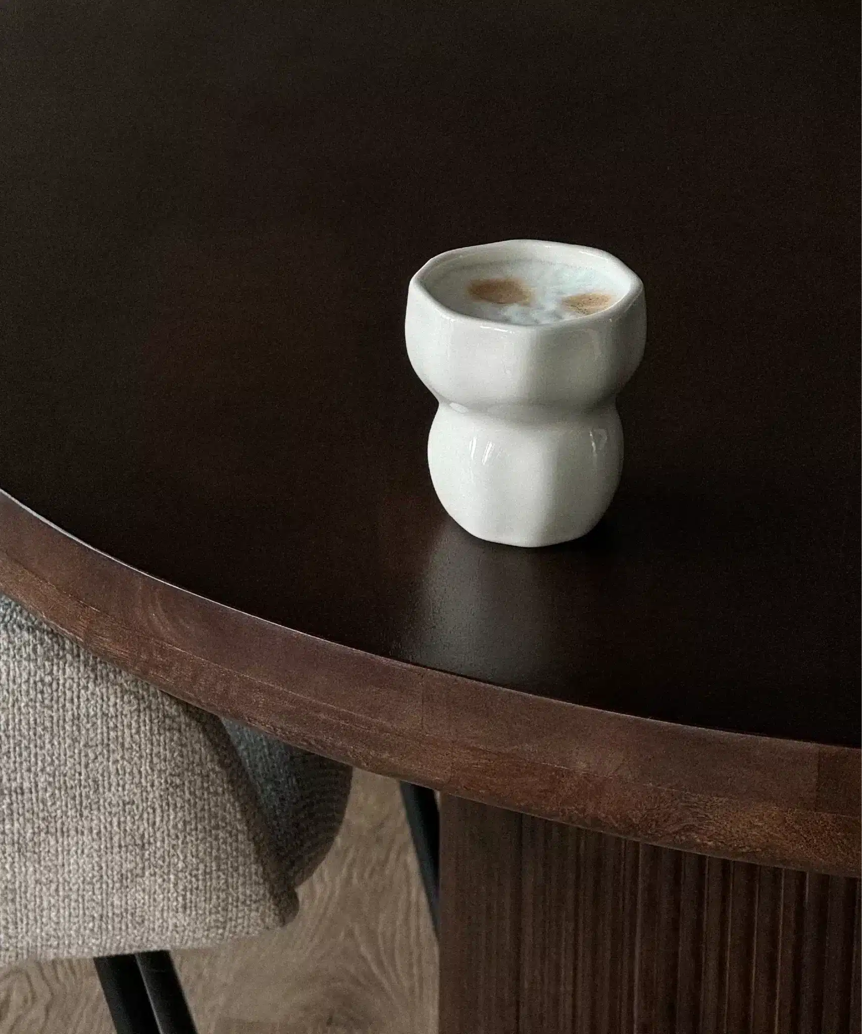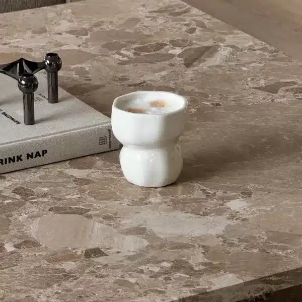 Švelniai išlenkta forma ir kiek netaisyklingas paviršius sukuria įspūdį, kad jis buvo lipdytas rankomis – kiekvienas puodelis yra unikalus.