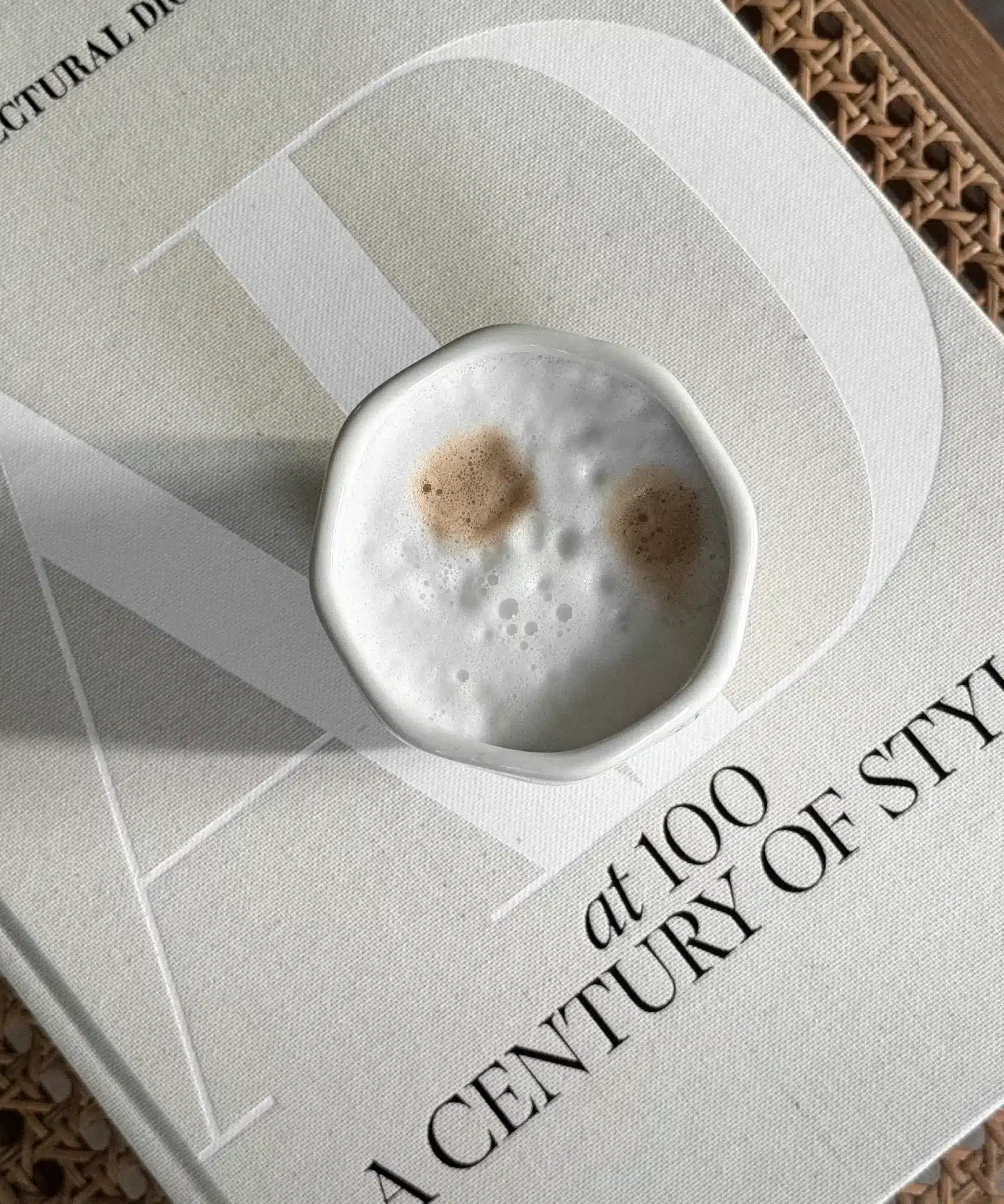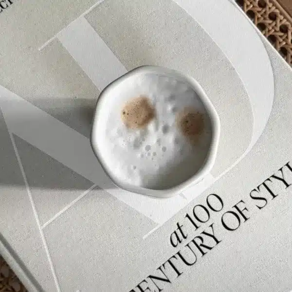 Blizgus kreminės balkšvos spalvos glajus suteikia natūralumo pojūtį ir padaro jūsų kavą, arbatą ar matcha dar ypatingesnę.
