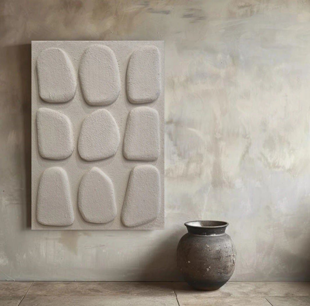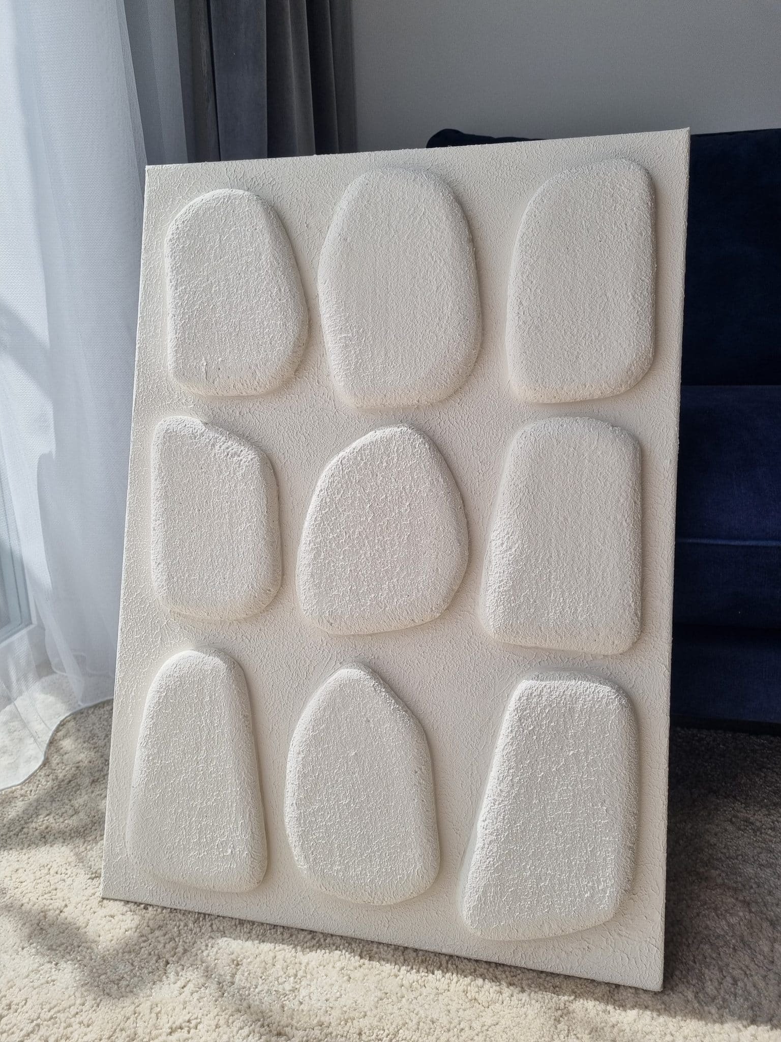 Skulptūrinis paveikslas ant drobės su porėmiu.