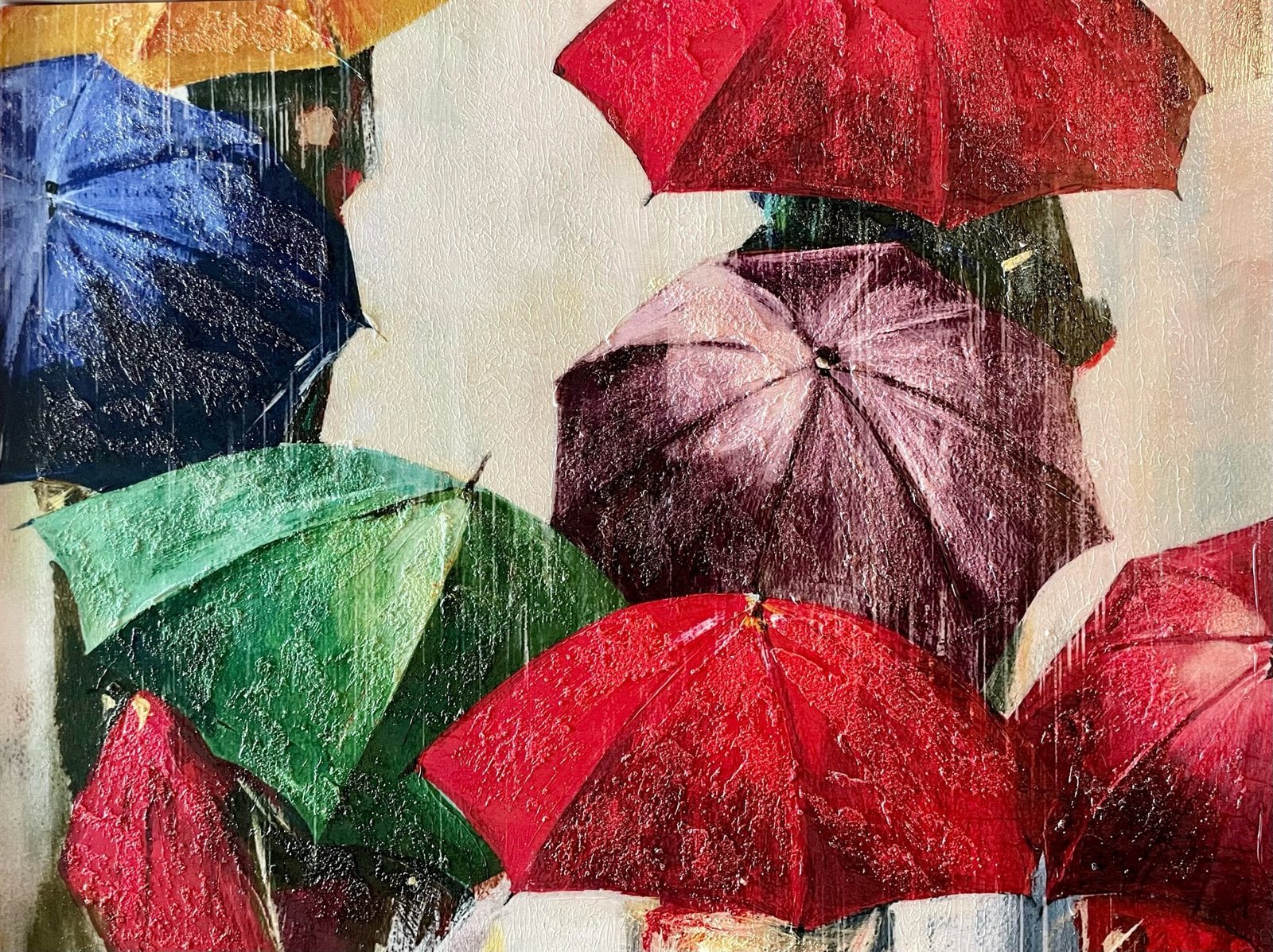 Paveikslas „Umbrella” – berėmis, ryškiomis spalvomis ant drobės pieštas paveikslas bet kuriam namų kampeliui suteiks gyvybės, žaismingumo ir žavesio!
