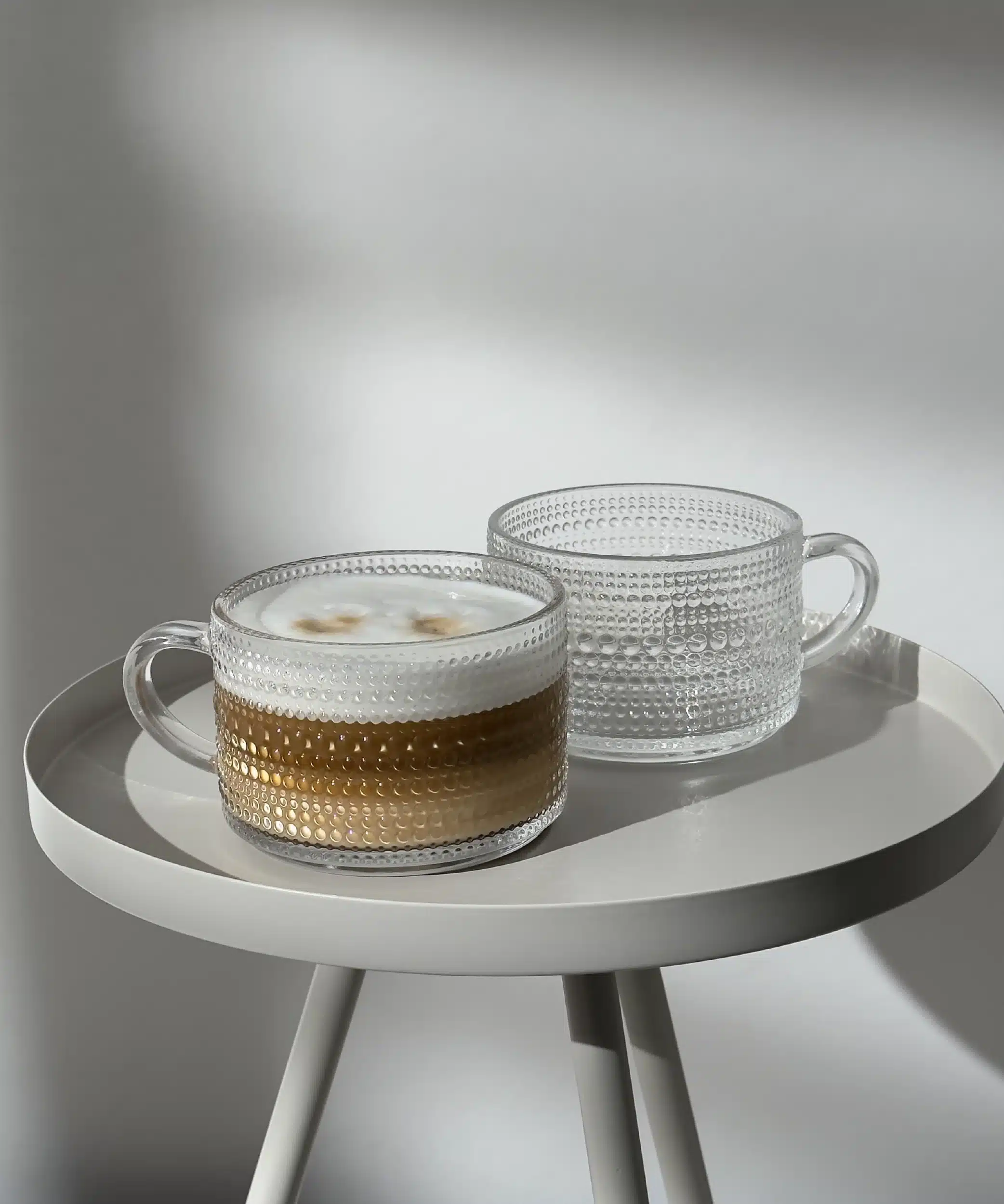 Gyvenimas per trumpas, kad savo gėrimą gertum iš nuobodžių stiklinių! Pristatome PEARLS stiklinius puodelius, kurių tiesiog negalima neįsimylėti. PEARLS puodelis dekoruotas daugybe burbuliukų, kurie atrodo kaip maži perlai! Puodeliai pagaminti iš storo stiklo leis Jums stilingai mėgautis karšta kava, aromatinga arbata ar saldžiu karštu šokoladu! Patrauklus dizainas puikiai derina funkcionalumą ir estetiką Dėl savo dizaino aukštos kokybės stiklas tarnaus ilgą laiką. Pasiruoškite nepamirštamiems skonio potyriams su puodeliu PEARLS.