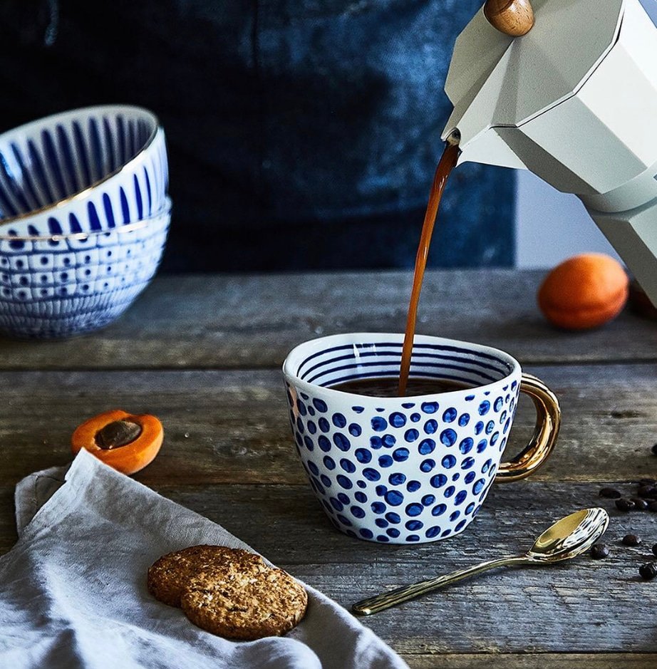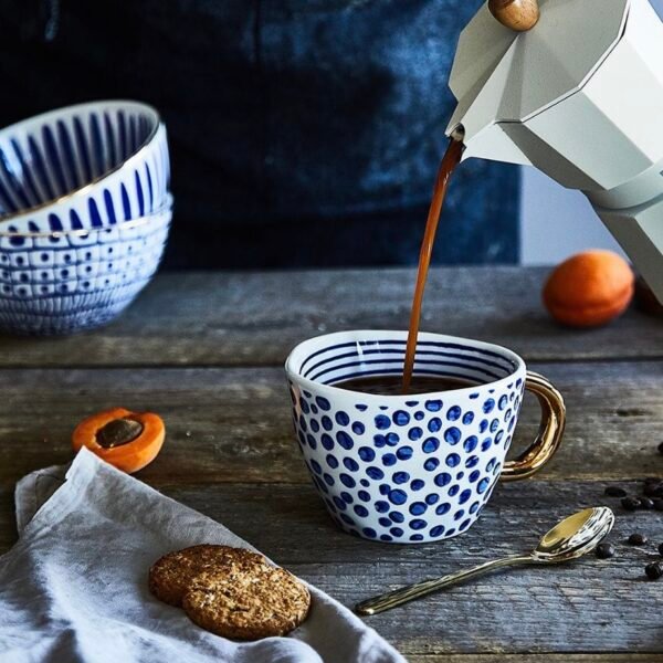 Stilingų SIIREN KUB puodelių kolekcija pasižymi žaviais, žaismingais mėlynos spalvos raštais ir aukso spalvos rankenėle, bei netaisyklinga puodelio forma. Tai labai žavūs puodeliai, kurie kavos/arbatos gėrimą pavers romantišku ir įkvepiančiu procesu. Šio sezono MUST HAVE – mėlynų raštų indai ant Jūsų stalo!