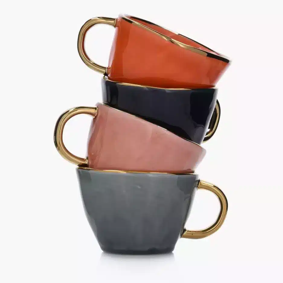 Stilingų SIIREN puodelių kolekcija pasižymi pastelinėmis spalvomis, aukso spalvos rankenėle ir krašteliais, bei netaisyklinga puodelio forma. Tai labai žavūs puodeliai, kurie kavos/arbatos gėrimą pavers romantišku ir įkvepiančiu procesu.