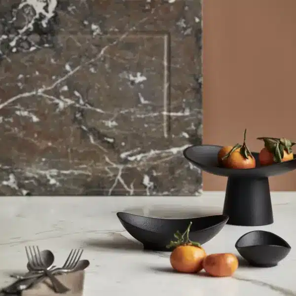 KEPEL kolekcijos serviravimo dubenys pagaminti iš juodos spalvos aliuminio be švino, todėl yra saugūs maistui. Dubenys yra minimalistinio dizaino, todėl bet koks maistas juose paserviruotas atrodo patraukliai ir įmantriai!
