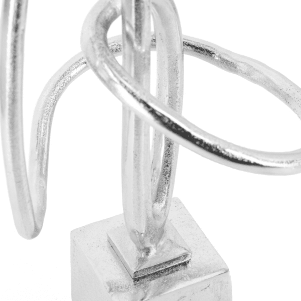 Moderni ir elegantiška interjero detalė, kuri akimirksniu suteiks erdvei išskirtinumo. Ši abstrakti metalinė skulptūra pasižymi subtiliomis, tarpusavyje persipinančiomis linijomis, kuriančiomis judesio ir balanso įspūdį. Sidabro spalvos paviršius atspindi šviesą, todėl dekoracija tampa išraiškingu akcentu tiek dieną, tiek vakare.