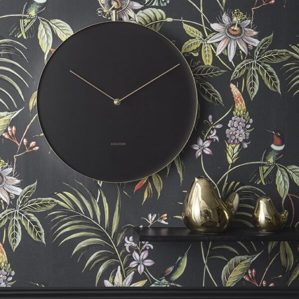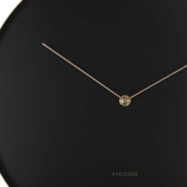 Sieninis laikrodis „Pendulum” paliks tikrai didelį įspūdį! Rodyklės yra itin plonos ir elegantiškos. Sieninis laikrodis Pendulum su juodu ciferblatu ir aukso spalvos detalėmis yra puristinio dizaino atstovas.