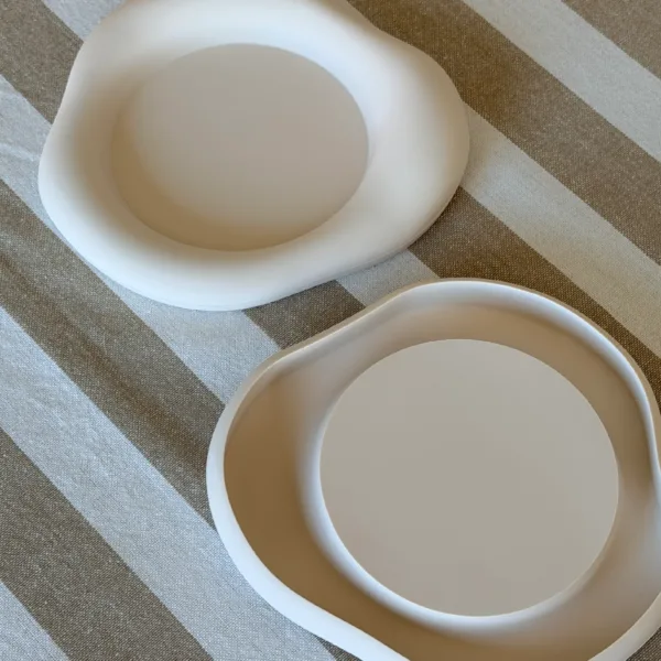 Smėlio spalvos silikoniniai padėkliukai su organiniu dizainu.