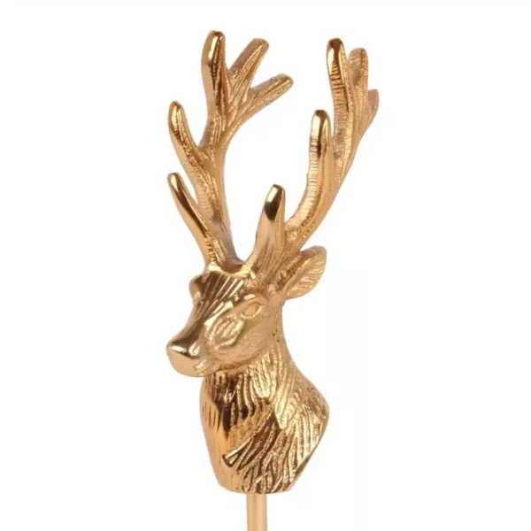 Elegantiška ir graži elnio puošmena ant pagrindo, pagaminta iš antikinės auksinės spalvos aliuminio. Tegul graži dekoratyvi elnio galva ant pagrindo sukuria jaukią nuotaiką lentynoje, ant gražaus padėklo arba derinkite su kitais interjero aksesuarais. Dydis h.30 Ø10 cm.