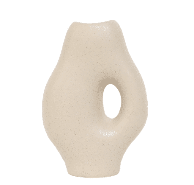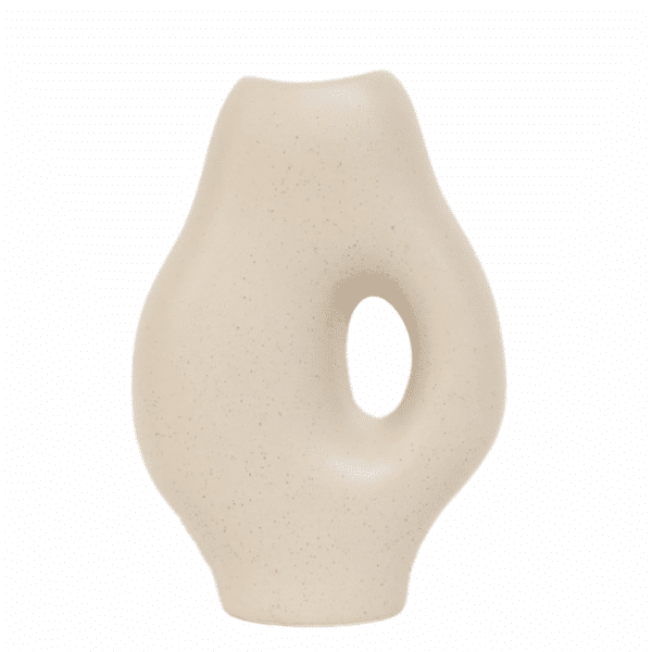 Tai moderni, šviesaus smėlio spalvos keramikinė vaza su organiška, banguota forma. Jos minimalistinis, skulptūriškas dizainas suteikia interjerui elegancijos.