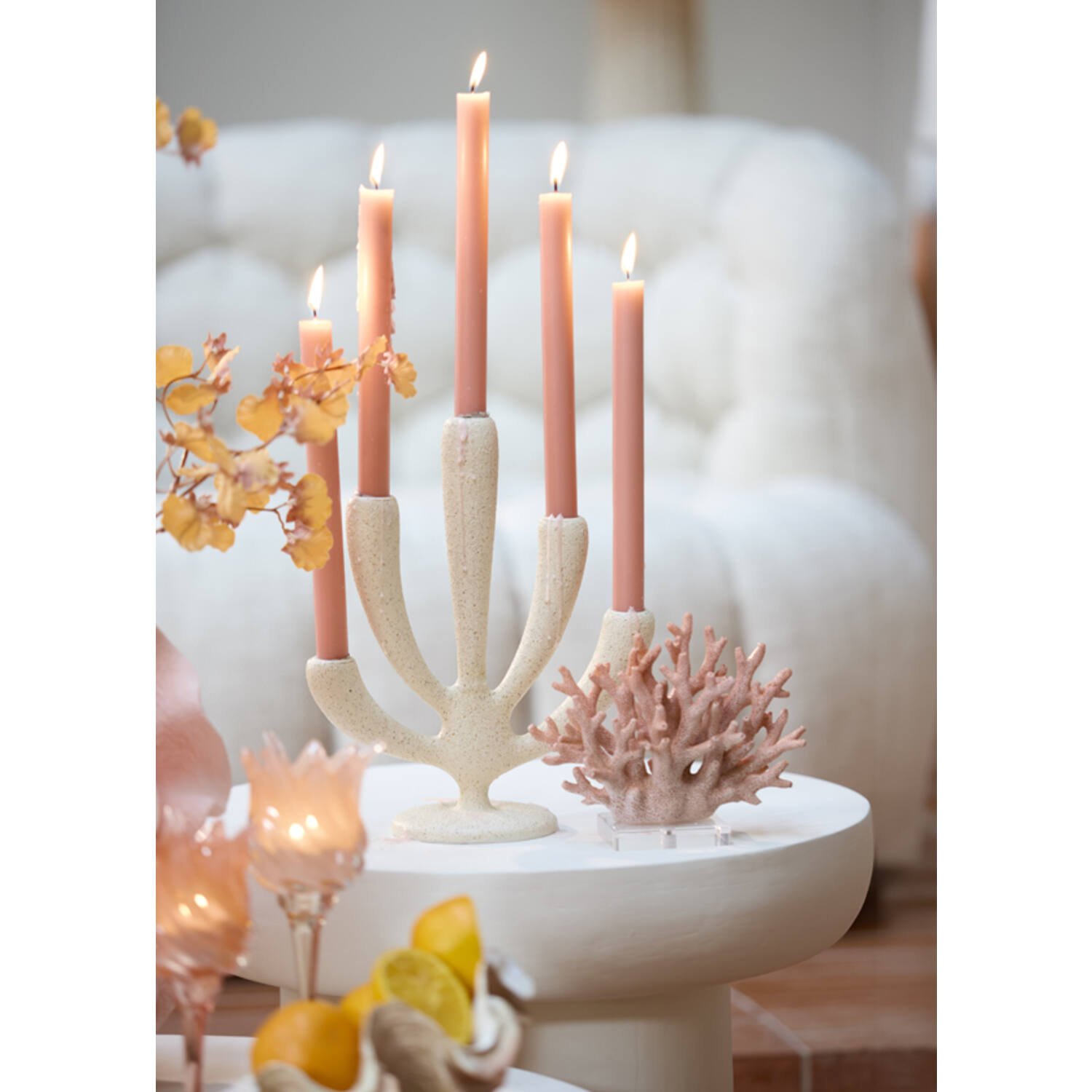 Žvakidė puikiai dera su ilgomis, klasikinėmis žvakėmis, o degančios liepsnos sukuria šiltą, raminančią aplinką. Tai idealus pasirinkimas svetainei, miegamajam ar šventiniam stalui – tiek kasdieniam jaukumui, tiek ypatingoms progoms.