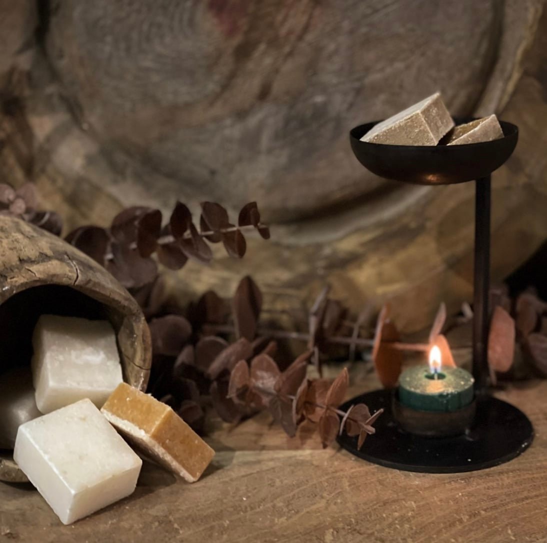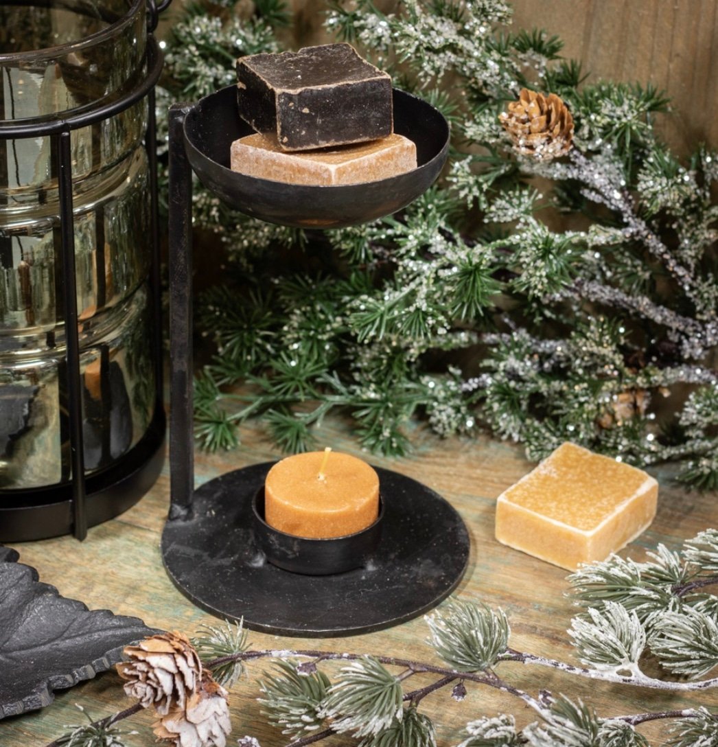 Žvakidė, kurioje uždegus žvakutę, viršutinėje talpoje galima kaitinti įvairius kietuosius namų kvapus.